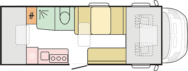 Dimensions couchages : Lit capucine : 140 x 210 cm Lits d'appoint dinette : 190 x 133 et 174 x 65 cm