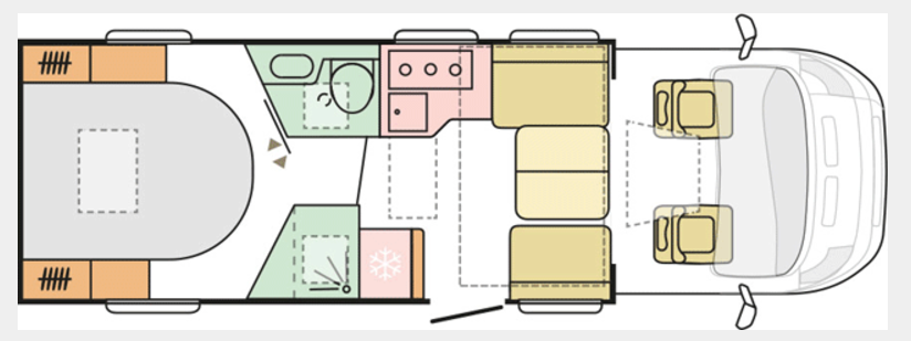 Dimensions couchages arrière : Lit central 195 X 150