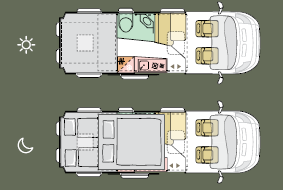 Type de couchages : Lit toit relevable + Lit pavillon