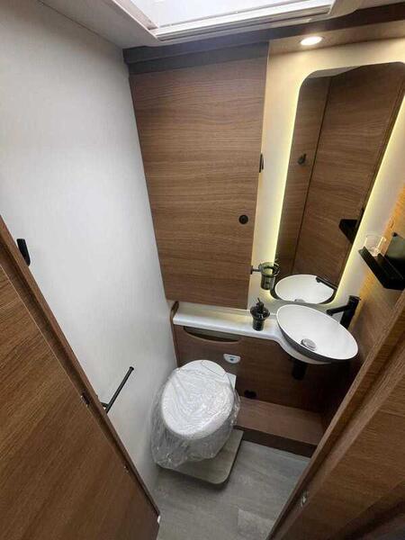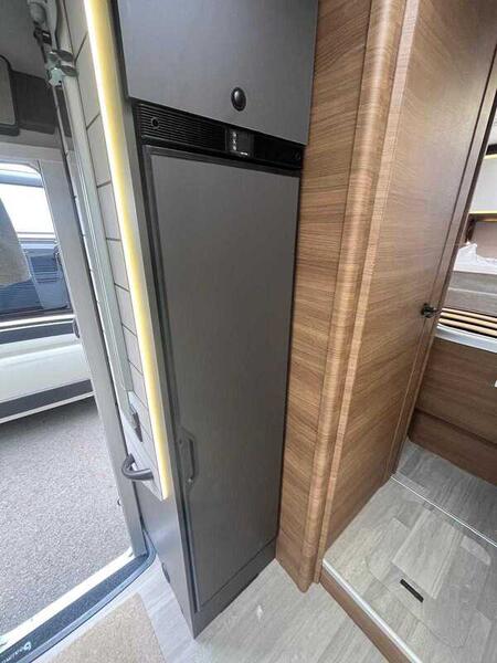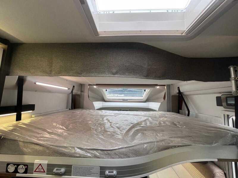 PACK PLUSFrein de stationnement électrique + Jantes aluminium 16", Volant et pommeau levier vitesse gainés cuir + Radars de recul + Porte cellule XL électrique avec 2 points, fermeture centralisée, fenêtre, moustiquaire et poubelle + Radio DAB Pioneer avec écran tactile 9'' + Caméra recul + Panneau solaire 200 W + MPPT + Lumière extérieure LED + Rideaux occultation vitres cabine Housses de cabine + Extracteur + Éclairage intérieur au placard + Système de fixation des bagages et rails dans le garage + Pneus M+S* + Isofix + Stores vénitiens et Pré-installation 2ième batterie + Pare-chocs avant couleur carrosserie + Plaque de protection noire + Lanterneau Skyview + Support TV : 3990 €