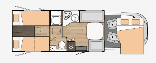 Type de couchages : Lit pavillon + Lits jumeaux sur soute