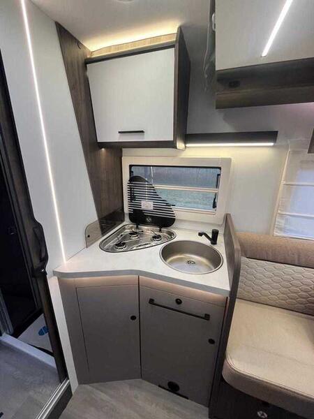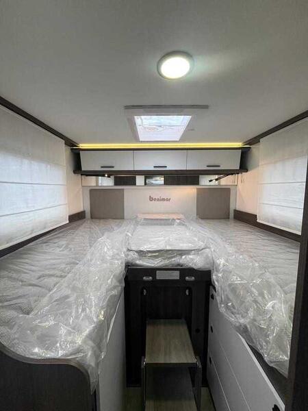 PACK PLUSPanneau solaire 200W + MPPT + Rideaux occultation vitres cabine + Porte cellule XL avec 2 points, fenêtre, moustiquaire et poubelle + Housses de cabine + Lumière extérieure LED + Projecteurs halogènes de virage + Radars de recul + Éclairage intérieur au plafond + Stores vénitiens + ISOFIX + Support TV + Pré-installation 2ième batterie et Mando Control INET X (No disponible para T424/T444/T481/T488/T496) + Lumineux Skyview + Boîte à gants avec serrure + Tableau de bord et garnitures « Trend » + Pare-chocs et moulures latérales peints dans la couleur de la carrosserie : 2795 €