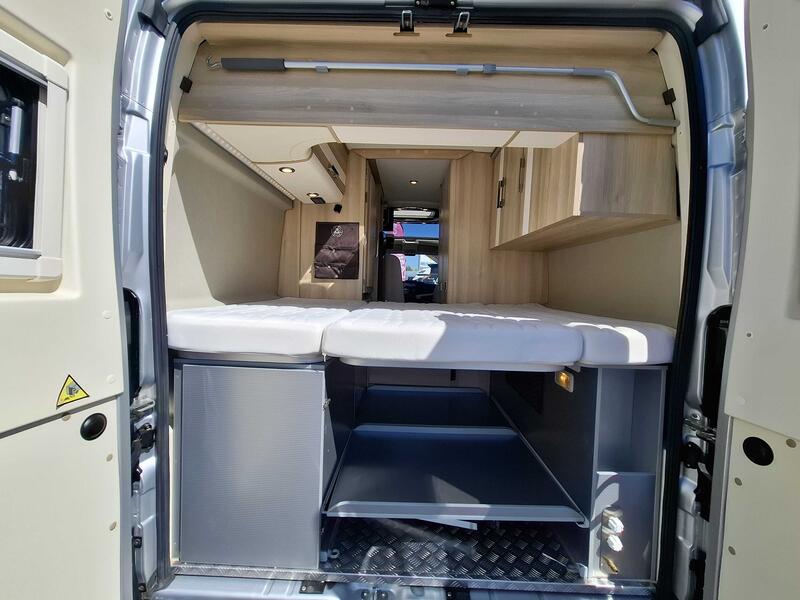 Dimensions couchages arrière : Lit transversal sur soute : 132 x 192 cm