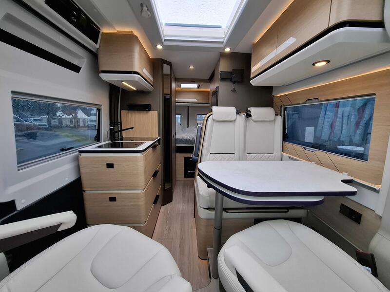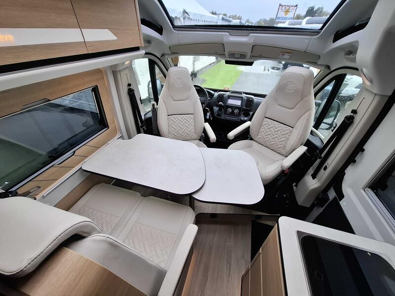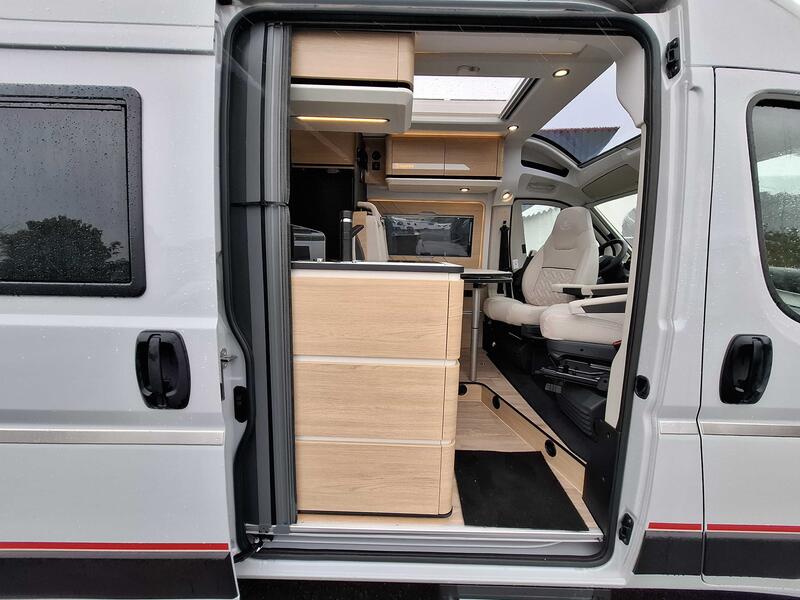 Pack Confort +Commandes au volant pour radio, Pneus all season 3PMSF, Porte moustiquaire ouvrant latéral, Haut-parleurs salon et chambre, Station multimédia DAB PIONEER® avec écran 6,8” et fonctions APPLE CAR PLAY/ ANDROID AUTO, Caméra de recul avec écran de contrôle intégré au tableau de bord, 2e clef télécommandée (PLIP), Commandes radio (ON/OFF, volume et stations) déportées dans la cellule, Traction+ avec Hill Descent Control (aide au maintien de la vitesse en descente), Stores pare-brise et baies cabine isothermes, Douchette extérieure avec eau chaude /eau froide : 3890 €