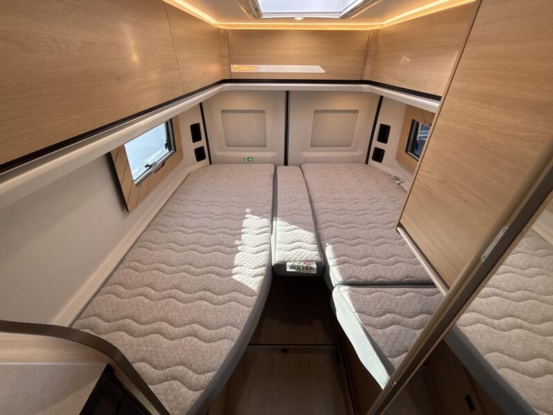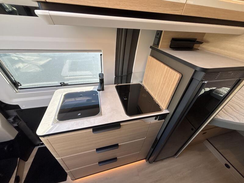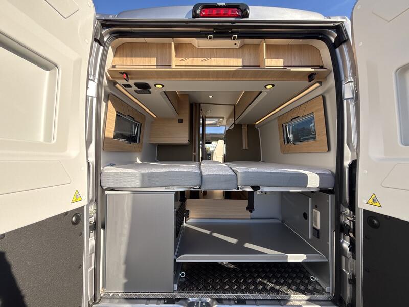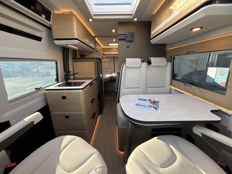 Pack Confort +Commandes au volant pour radio, Pneus all season 3PMSF, Porte moustiquaire ouvrant latéral, Haut-parleurs salon et chambre, Station multimédia DAB PIONEER® avec écran 6,8” et fonctions APPLE CAR PLAY/ ANDROID AUTO, Caméra de recul avec écran de contrôle intégré au tableau de bord, 2e clef télécommandée (PLIP), Commandes radio (ON/OFF, volume et stations) déportées dans la cellule, Traction+ avec Hill Descent Control (aide au maintien de la vitesse en descente), Stores pare-brise et baies cabine isothermes, Douchette extérieure avec eau chaude /eau froide : 3890 €