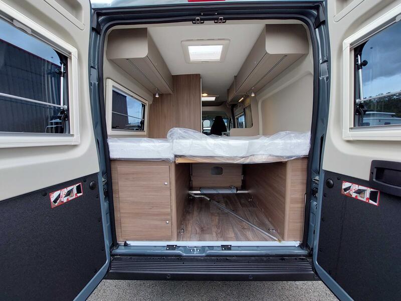 Dimensions couchages arrière : Lit transversal arrière : 197 x 157 - 150 cm