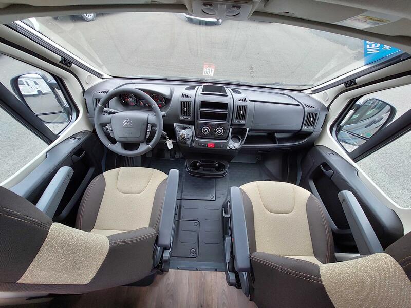 Série PROCITROEN JUMPER 3.500 kg - 2.2 l Multijet - 103 kW / 140 ch - Euro 6D - boîte de vitesses manuelle à 6 rapports, Pare-chocs avant blanc, Jantes alliage 16", Volant multifonction, Stores plissés de cabine, Store extérieur (longueur selon implantation), Sérigraphie pro + Pack Style : Volant et pommeau de levier de vitesse en cuir, Calandre avec bandes chromées, Feux de jour LED, Encadrement des feux coloris noir + Pack Confort : Lanterneau Midi Heki 70 x 50 cm dans salon, Équipement douche (pommeau de douche extractible, rideau de douche, rail de guidage, support pour le pommeau), Baie dans la salle d'eau, Tringle à vêtements dans la salle d'eau, Large marchepied, Rallonge pivotante de la table dînette, Précâblage pour caméra de recul : 0 €