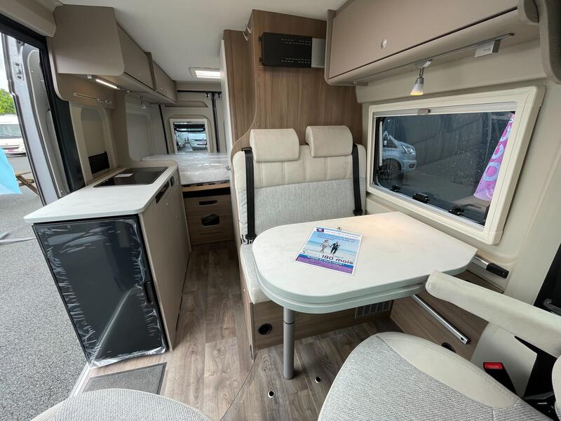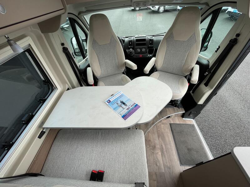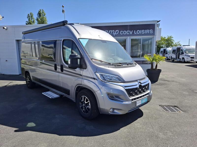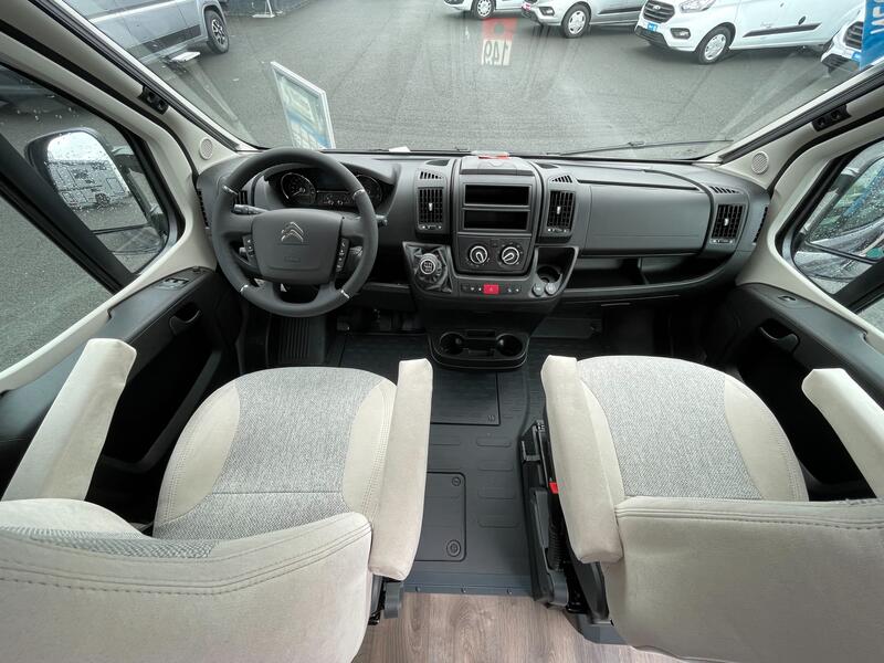 Série PROCITROEN JUMPER 3.500 kg - 2.2 l Multijet - 103 kW / 140 ch - Euro 6D - boîte de vitesses manuelle à 6 rapports, Pare-chocs avant blanc, Jantes alliage 16", Volant multifonction, Stores plissés de cabine, Store extérieur (longueur selon implantation), Sérigraphie pro + Pack Style : Volant et pommeau de levier de vitesse en cuir, Calandre avec bandes chromées, Feux de jour LED, Encadrement des feux coloris noir + Pack Confort : Lanterneau Midi Heki 70 x 50 cm dans salon, Équipement douche (pommeau de douche extractible, rideau de douche, rail de guidage, support pour le pommeau), Baie dans la salle d'eau, Tringle à vêtements dans la salle d'eau, Large marchepied, Rallonge pivotante de la table dînette, Précâblage pour caméra de recul : 0 €