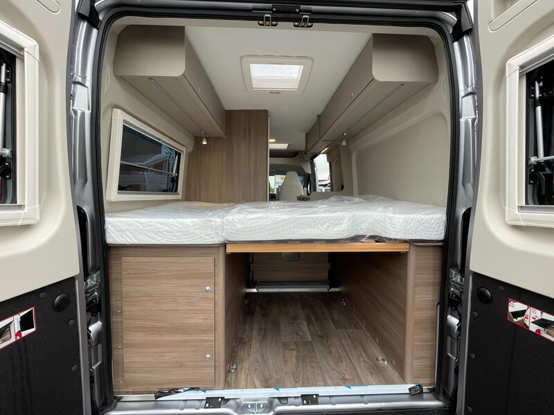 Dimensions couchages arrière : Lit transversal arrière : 197 x 157 - 150 cm