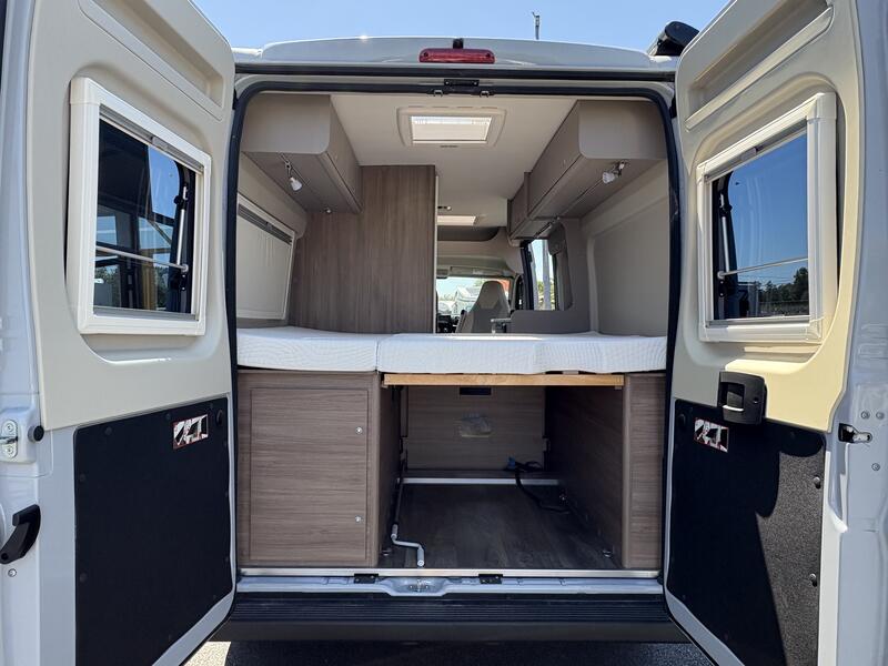 Dimensions couchages arrière : Lit transversal arrière : 197 x 157 - 150 cm