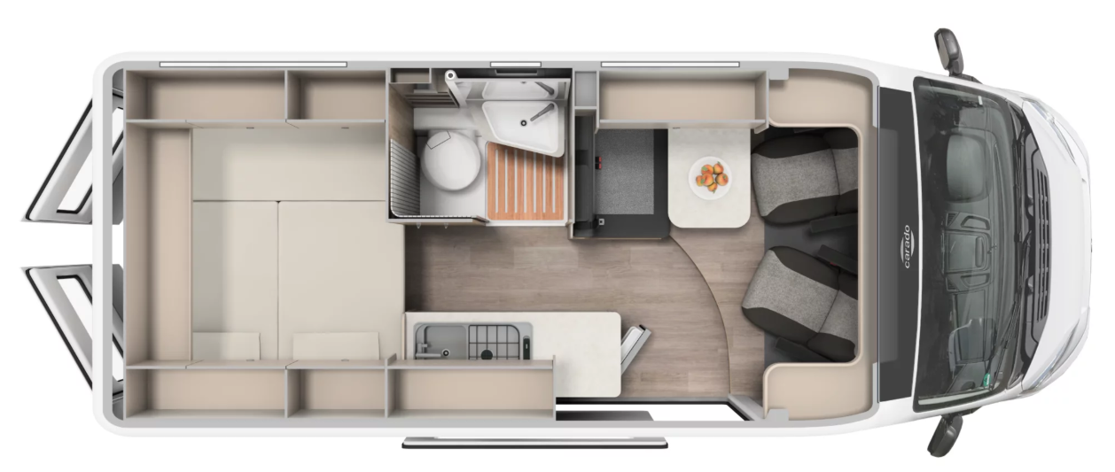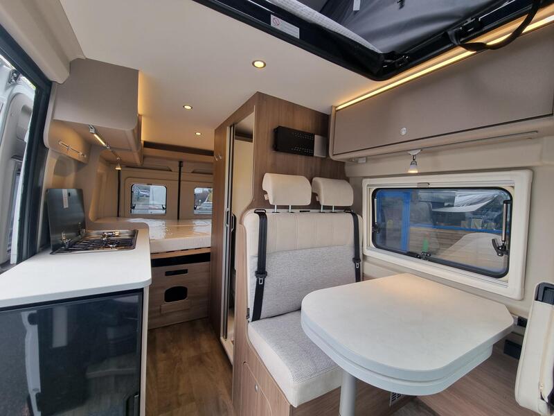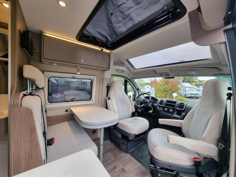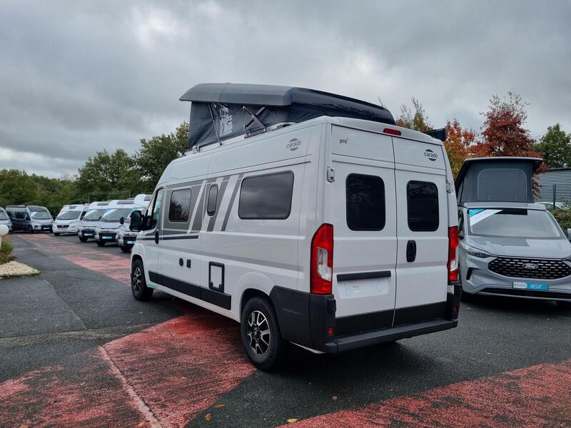 Pack pro+ CV600Pack Optique 1 : Pare-chocs avant peint, Skidplate coloris noir brillant, Feux antibrouillard + Pack Optique 2 : Volant et pommeau de levier de vitesse en cuir, Tableau de bord avec applications Techno-Trim Jantes, alliage 16" bicolores + Pack Confort : Lanterneau Midi Heki 70 x 50 cm dans salon, Equipement de douche, Baie dans la salle d'eau, Tringle à vêtements dans la salle d'eau, Large marchepied, Rallonge pivotante de la table dînette + Réservoir carburant 90 l, Stores plissés de cabine, Baies à cadre affleurant, Store extérieur 3,75 m (coloris noir), Sérigraphie pro+, Eclairage LED intégré au-dessus des meubles de pavillon, Toit panoramique de cabine, Meuble de pavillon arrière périphérique : 0 €