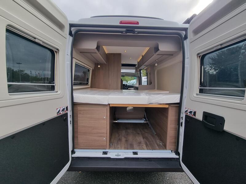 Dimensions couchages arrière : Lit transversal : 197 x 157 - 150 cm