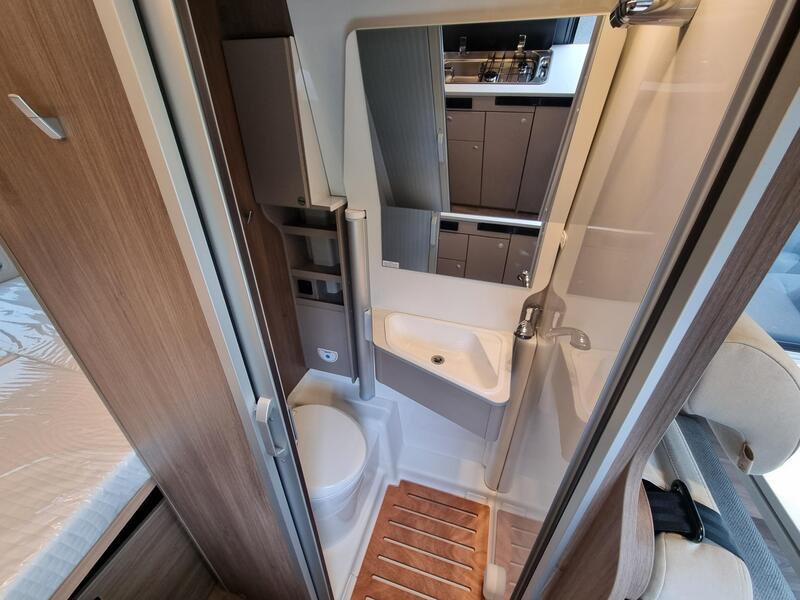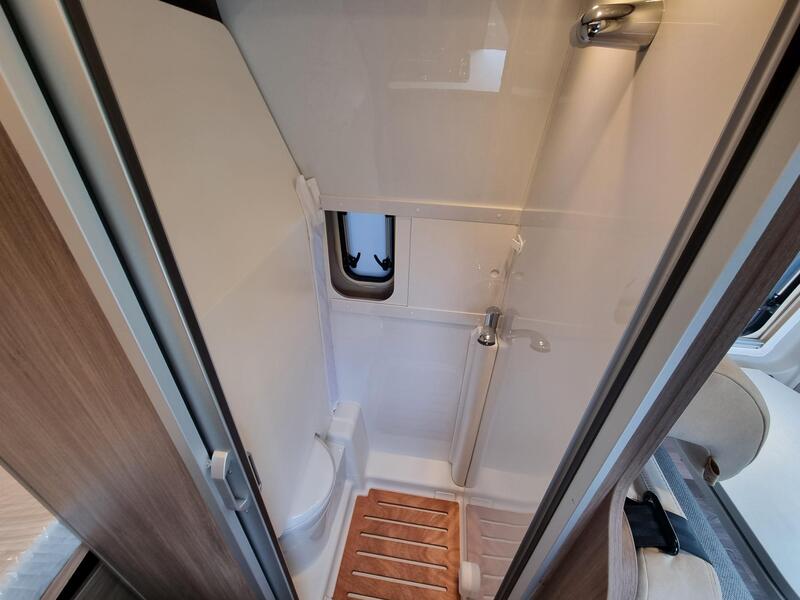 Options modèle exposéAmbiance Ice (blanc) + Caillebotis de douche en bois + Toit relevable coloris noir + Prédisposition TV / Support TV + Prise USB pour rail multifonction + Précâblage pour caméra de recul + Pack multimédia avec caméra de recul : 8340 €