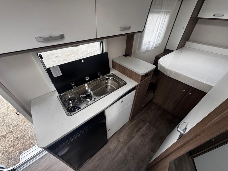 PACK PRO +Pack Confort + Pack Optique 1 et 2, Couleur extérieure gris Artense métallisé, Stores plissés de cabine, Toit panoramique de cabine, Coloris spécifique des portes des meubles de pavillon en blanc Cosy, Sérigraphie pro+, Store extérieur 4m, Réservoir eaux usées isolé : 4035 €