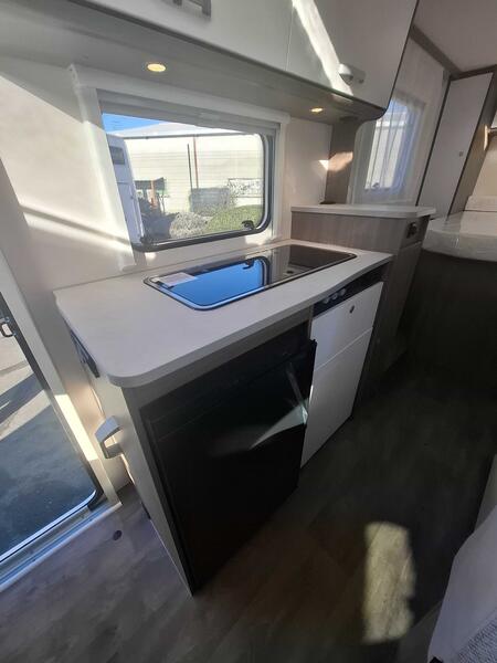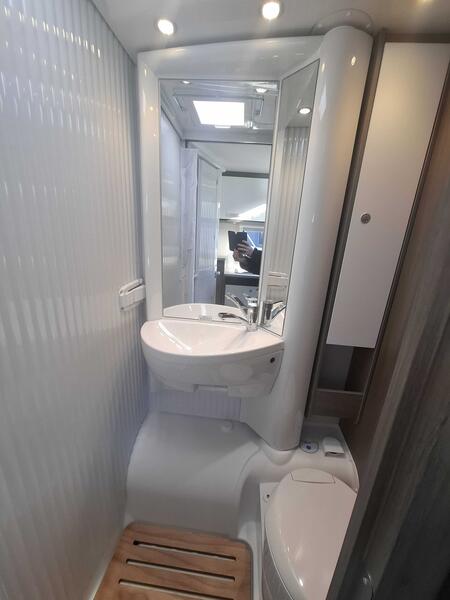 Pack pro+ V339Jantes alliage 16" bicolores, Couleur extérieure gris Artense métallisé, Stores plissés de cabine, Toit panoramique de cabine, Coloris spécifique des portes des meubles de pavillon en blanc Cosy, Sérigraphie pro+, Store extérieur 4 m, Réservoir eaux usées isolé : 4035 €