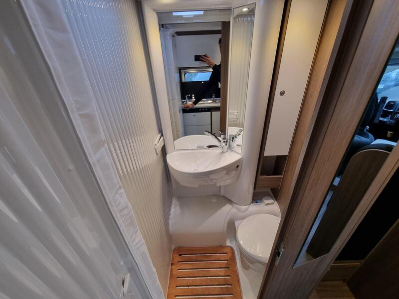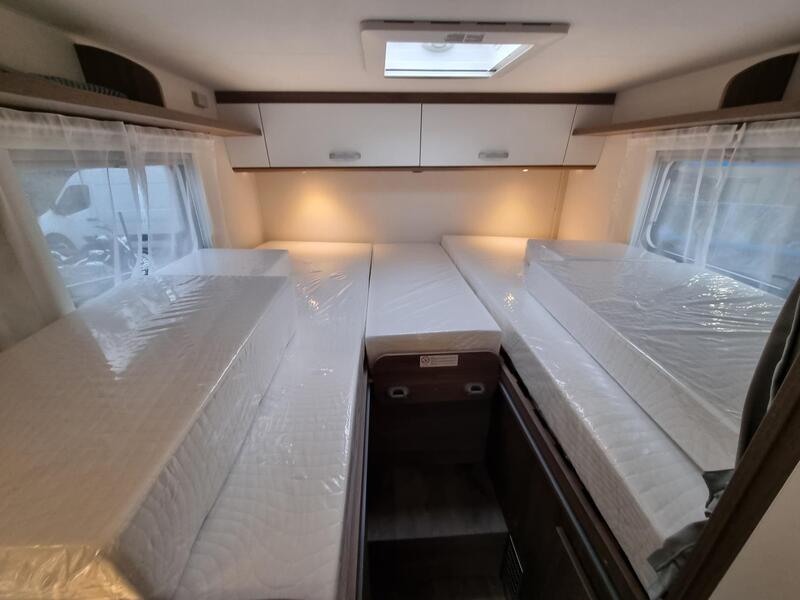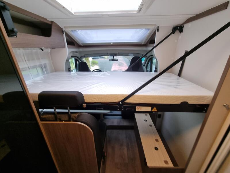 Coussin supplémentaire pour maxi couchage sur lits jumeaux + Caillebotis de douche + Précâblage TV 12 V et support écran plat + Panneau solaire 100 W + Précâblage pour caméra de recul + Lit Clever-Lift + Pack multimédia avec caméra de recul : 4170 €