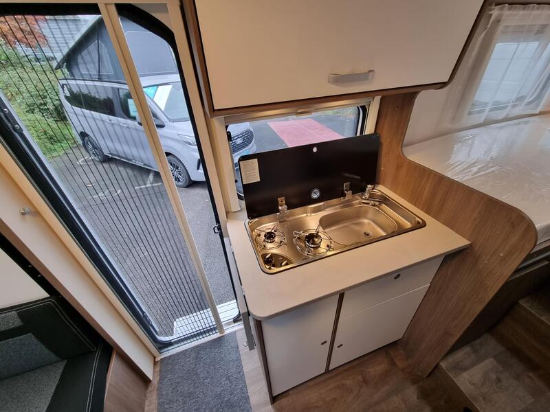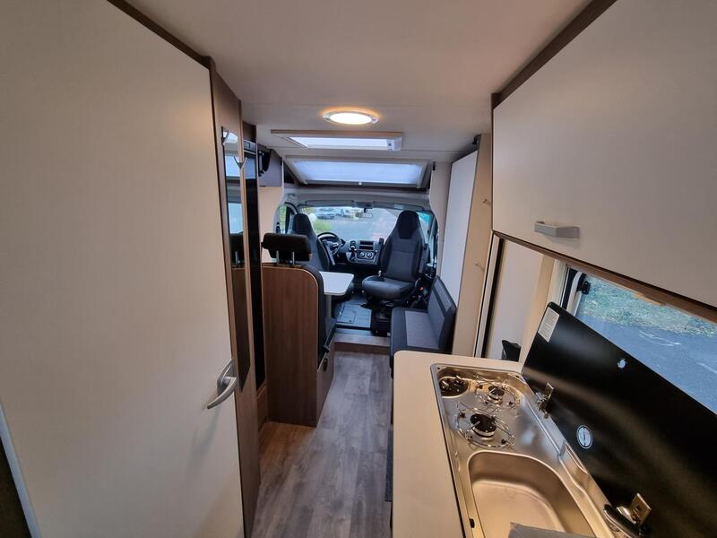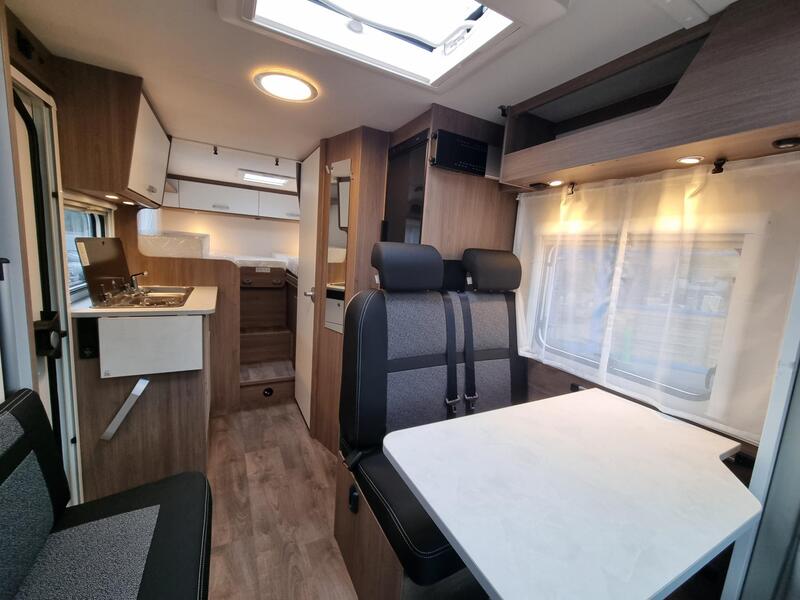 PACK PRO + Pack Optique 1 : Pare-chocs peint - Pack Optique 2 : jantes alliage 16" bicolores - Pack Confort : Couleur extérieure gris Artense métallisé, Stores plissés de cabine, Toit panoramique de cabine, Coloris spécifique des portes des meubles de pavillon en blanc, Cosy Sérigraphie pro+, Store extérieur 4 m, Réservoir eaux usées isolé, 2ème trappe extérieure (selon modèle) : 4099 €