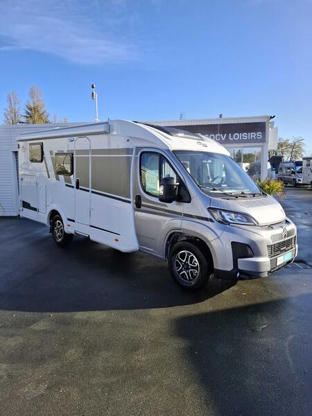 Pack pro+ V347Jantes alliage 16" bicolores, Couleur extérieure gris Artense métallisé, Stores plissés de cabine, Toit panoramique de cabine, Coloris spécifique des portes des meubles de pavillon en blanc Cosy, Sérigraphie pro+, Store extérieur 4m, Réservoir eaux usées isolé, 2ème trappe extérieure : 4035 €
