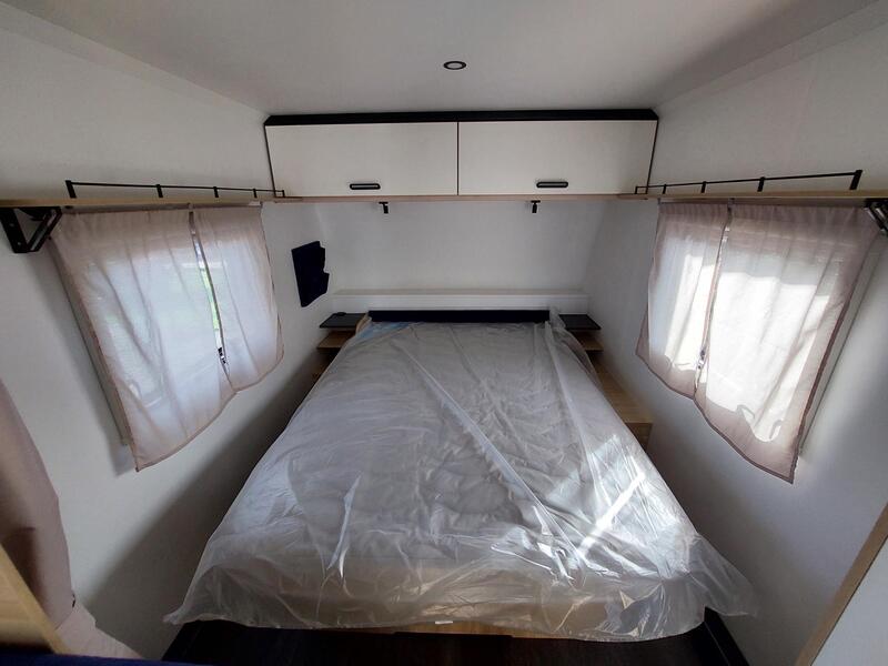 PACK COSYLanterneau panoramique (70x50), moustiquaire de porte, spots de lecture leds supplémentaires, confection exclusive, pochette en tissu chambre parents, pré équipement batterie : 1250 €
