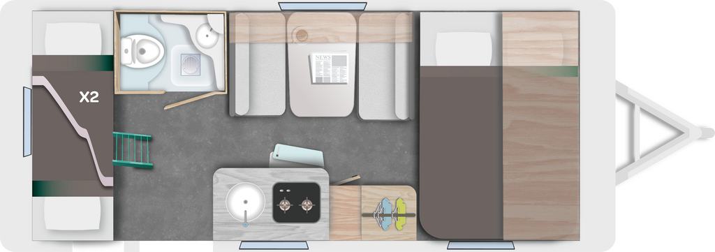 Type de couchages : Lit dinette + Lit transversal + Lits superposés