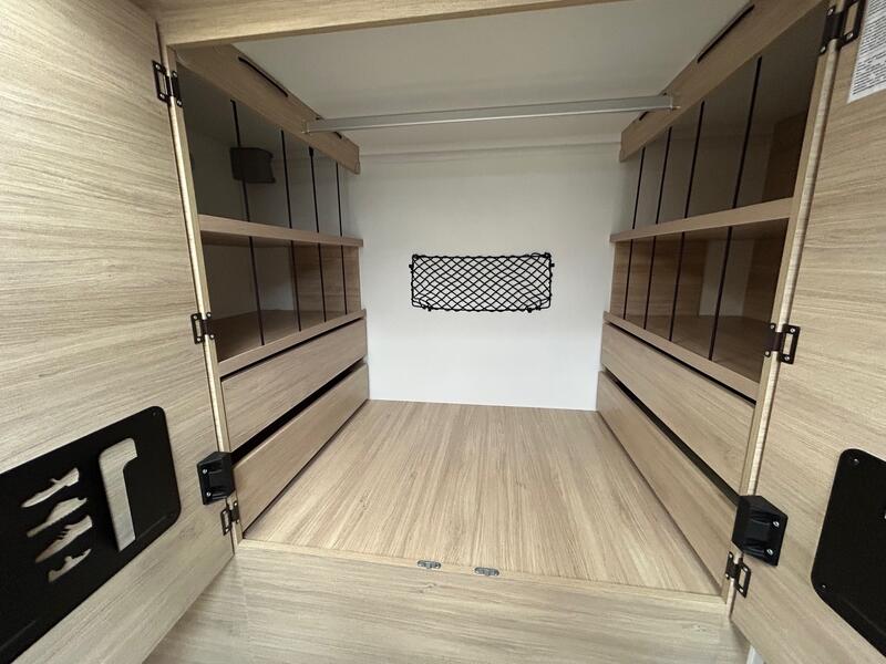 Pack Accessoires P (De série)Store extérieur - auvent, panneau solaire, moustiquaire de porte, store intérieur cabine, compléments couchage lits jumeaux, kit pose 2ème batterie : 0 €
