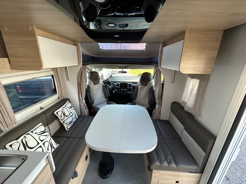 ultimate editionChâssis blanc Climatisation manuelle de cabine Double airbag Fix and go Sièges de cabine pivotants réglables en hauteur avec double accoudoir Housses de sièges cabine assorties à l’ambiance cellule Rétroviseurs électriques dégivrants Régulateur / limiteur de vitesse ESP Traction + Hill descent control Eco pack FIAT : Stop&Start, alternateur intelligent, pompe à carburant à gestion électronique Isolation marche d'entrée Toit panoramique cabine ouvrant Lanterneau panoramique (ou double lanterneau) + Rideaux de séparation cabine/cellule Fenêtres double-vitrage avec combiné stores moustiquaire Voilages Charnières placards amorties Prises USB/USB-C Conception IRP : toit plancher parois polyester Technibox Pare-chocs avant peint Jantes acier avec enjoliveurs 15'' gris Pneus 4 saisons Feux antibrouillard Porte d’entrée avec fermeture centralisée porteur cellule Pré-équipement TV Chauffage sur carburant utilisable en roulant Eclairage d'auvent Penderie Pré-disposition panneau solaire (MPPT ready) Précâblage caméra de recul Fixations Isofix : 0 €