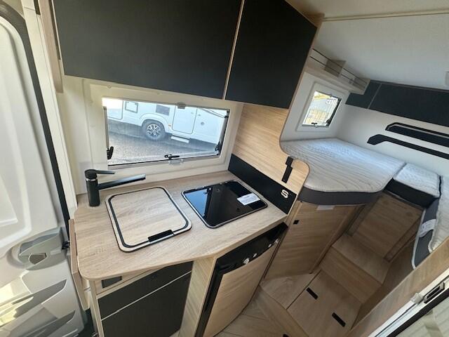 PACK SPORT EDITION Châssis Gris Matter Climatisation automatique de cabine Double airbag Frein à main électrique Fix and go Sièges de cabine pivotants réglables en hauteur avec double accoudoir Housses de sièges cabine assorties à l’ambiance cellule Rétroviseurs électriques dégivrants Régulateur / limiteur de vitesse ESP Calandre Trail START & STOP Isolation marche d'entrée Toit panoramique cabine ouvrant Lanterneau panoramique (ou double lanterneau) Rideaux de séparation cabine/cellule Fenêtres double-vitrage avec combiné stores moustiquaire Voilages dinette Rideaux d’isolation thermique des baies de cabine Charnières placards amorties Prises USB/USB-C Prise eau extérieure Conception IRP : toit plancher parois polyester Technibox Jantes alliage 16’’ noires Prise de gaz extérieure FORD Pass Feux et essuie-glaces automatiques Feux antibrouillard Matelas couchage principal Premium Pré-équipement TV Chauffage sur carburant utilisable en roulant Eclairage d'auvent Penderie Pré-disposition panneau solaire (MPPT ready) Précâblage caméra de recul : 0 €