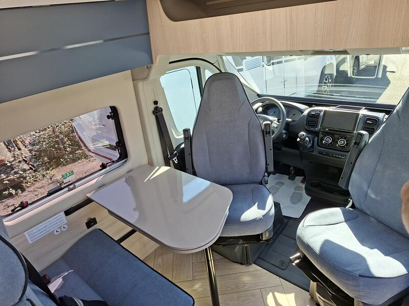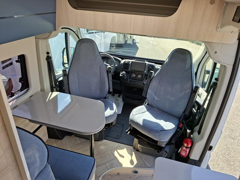 PACK BREAK EDITION Blanc Climatisation manuelle de cabine Double airbag Fix and go Sièges de cabine pivotants réglables en hauteur avec double accoudoir Rétroviseurs électriques dégivrants Régulateur / limiteur de vitesse ESP Traction + Hill descent control Eco pack FIAT : Stop&Start, alternateur intelligent, pompe à carburant à gestion électronique Lanterneau panoramique (ou double lanterneau) Fenêtres double-vitrage avec combiné stores moustiquaire Rideaux d’isolation thermique des baies de cabine Prises USB/USB-C Jantes acier avec enjoliveurs 15'' gris Pneus 4 saisons Pré-équipement TV Salle d'eau avec fenêtre Baies arrière ouvrantes Chauffage au gaz Extension table dinette Marchepied électrique Pré-disposition panneau solaire (MPPT ready) Précâblage caméra de recul : 0 €