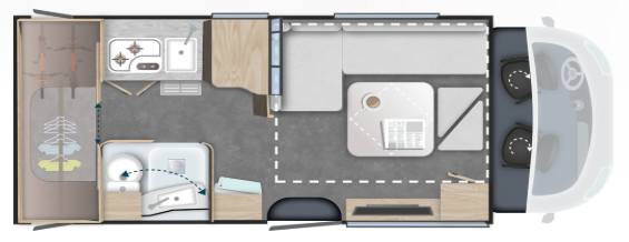 Dimensions couchages arrière : Lit d'appoint dinette : 125x195cm