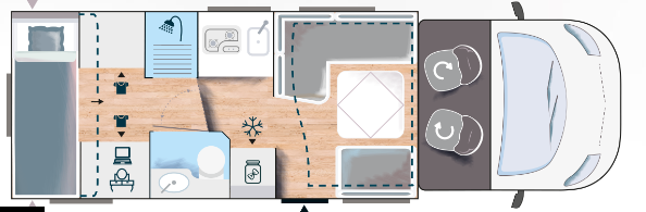 Type de couchages : Lit dinette + Lit pavillon + Lit transversal
