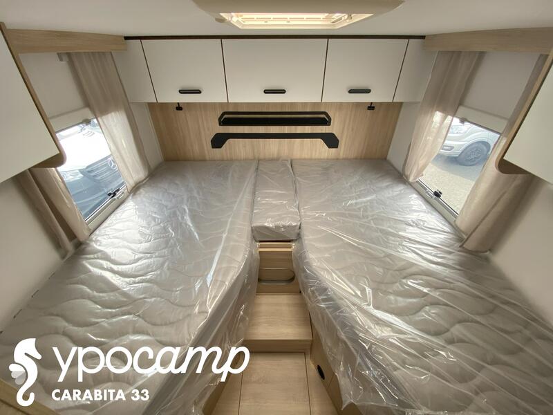 Type de couchages : Lit pavillon + Lits jumeaux sur soute