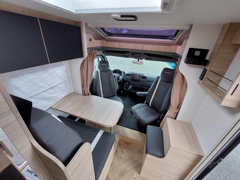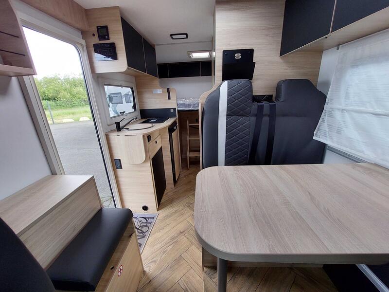 Série ETAPE LINEClimatisation manuelle de cabine, Double airbag, Roue de secours, Sièges de cabine pivotants réglables en hauteur avec double accoudoir, Housses de siège cabine assorties à l’ambiance cellule, Rétroviseurs éléctriques, Régulateur / limiteur de vitesse, ESP, START & STOP, Lanterneau panoramique (ou double lanterneau), Fenêtres double-vitrage avec combiné stores moustiquaire, Voilages dinette, Prises USB, Conception IRP : toit plancher parois polyester, plancher 64 mm, Technibox, Jantes acier 16'' avec enjoliveurs anthracites, Pré-équipement TV, Chauffage sur carburant utilisable en roulant, Extension table dinette, Marchepied électrique, Penderie, Pré-disposition panneau solaire (MPPT ready), Précâblage caméra de recul, Fixations Isofix : 0 €