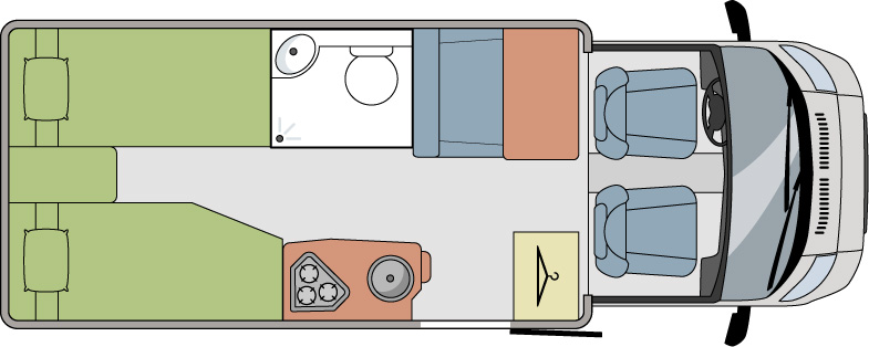 Type de couchages : Lit dinette + Lits jumeaux sur soute