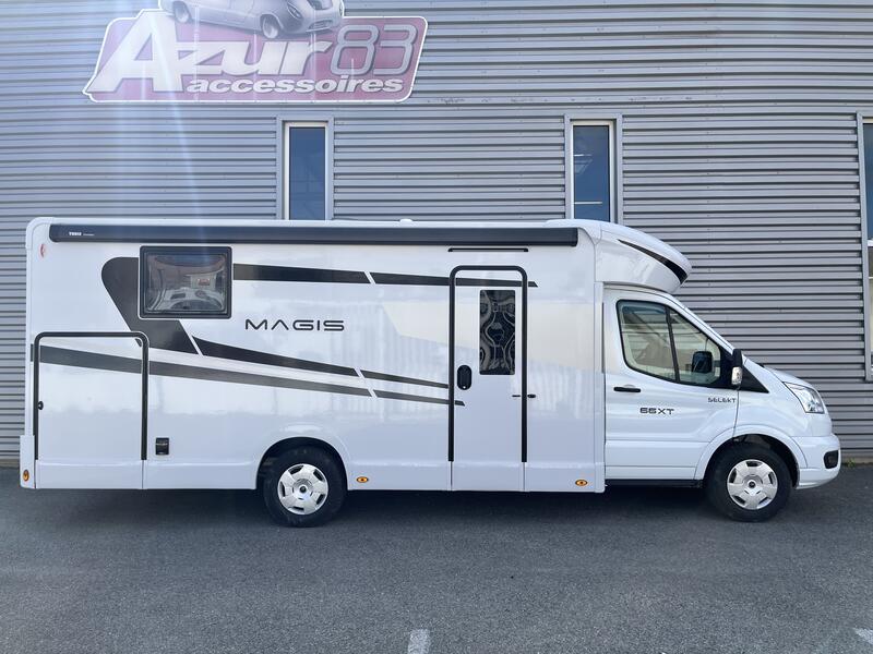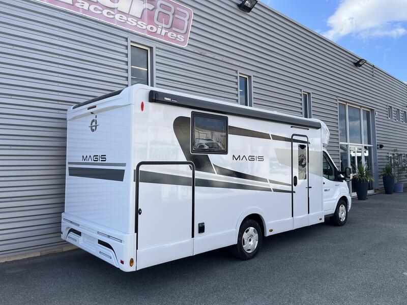PACK MAGISMotorisation 165cv / Store extérieur Thule Anthracite / Panneau solaire 200W / Porte cellule XL avec 2 points de fermeture / Stores occultants plissés cabine / Prise gaz extérieure / Douchette extérieure : 4000 €