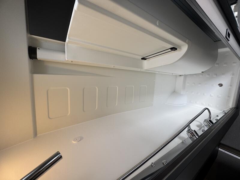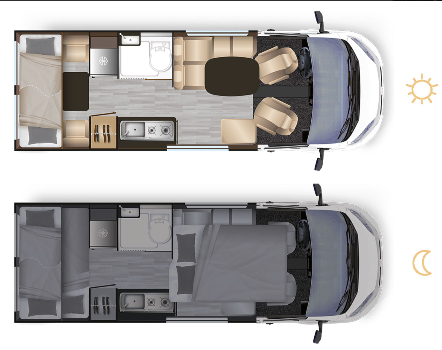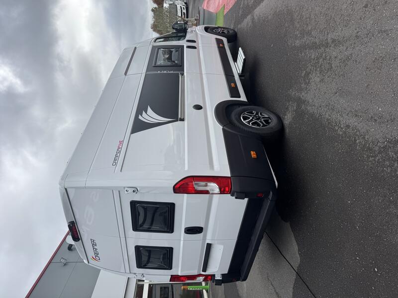 Options Usine Finition Fun + = Éléments de la finition FUN / Peinture pare-choc avant couleur carrosserie / Jantes alu / Skid plate bouclier avant noire / Commandes radio au volant / Feux antibrouillard avant / Découpe cabine / Station multimédia DAB PIONEER® avec écran 6,8" et fonctions APPLE CAR PLAY / ANDROID AUTO / Caméra de recul avec écran de contrôle intégré au tableau de bord / Ambiance TISSU / TEP* PEPPER ou TEP* ARIZONA / Salle d'eau DUO'SPACE avec paroi pivotante (D43 UP, D68, CAMPER FIVE, CAMPER SPORT) / 2e Batterie cellule AGM 92Ah / 2e clé télécommande (PLIP) / Gouttière porte latérale avec éclairage LED intégré / Décoration extérieure FUN+ / PACK START : - Porte moustiquaire ouvrant latéral - Stores pare-brise et baies cabine isothermes double plissés à cassette - Marchepied électrique + Boite automatique : 9850 €