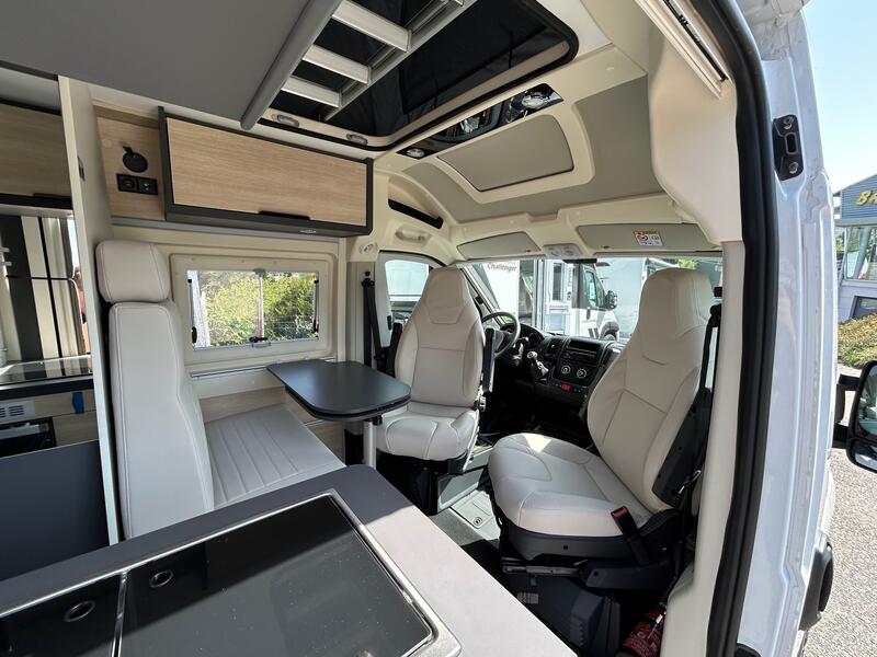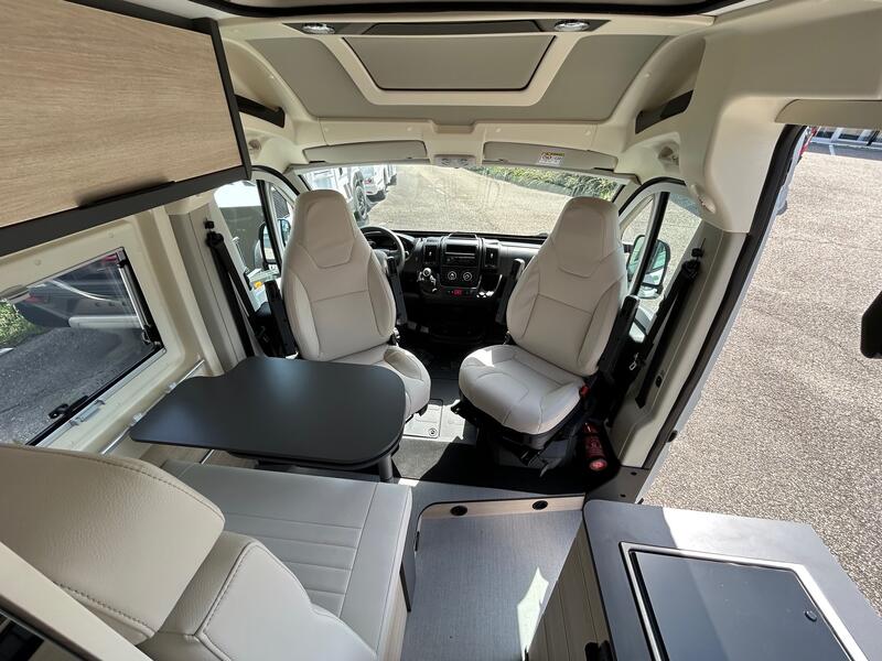 PACK FUN +Motorisation 140 ch Peinture pare-chocs avant couleur carrosserie ESC avec ASR (antipatinage), ROM (réduction du roulis), aide au démarrage en côte Traction + avec Hill Descent Control Précâblage panneau solaire et HDMI Sièges cabine Confort réglables en hauteur avec embase pivotante, sellerie coordonnée et 2 accoudoirs Porte moustiquaire ouvrant latéral Store cabine REMIS Marchepied électrique Autoradio PIONEER® USB avec fonction BLUETOOTH® Ambiance sellerie tissu / TEP* ou TEP* Chauffage carburant WEBASTO 4000w et chauffe-eau WHALE 2e batterie cellule 2e clef télécommandée (PLIP) Pack ELECTRIK : 3900 €