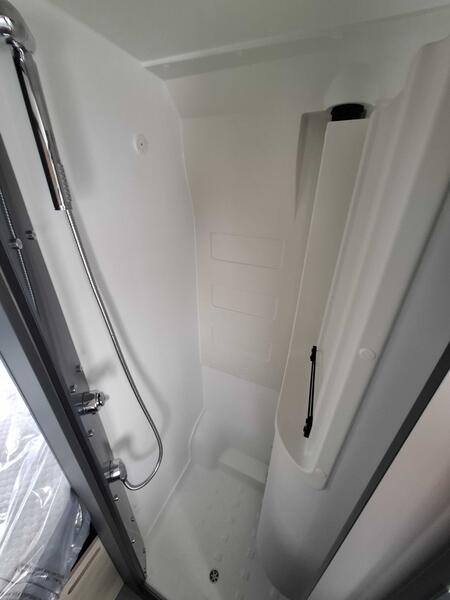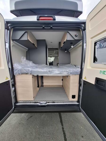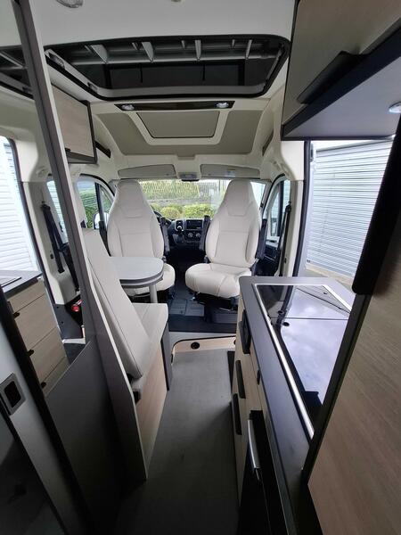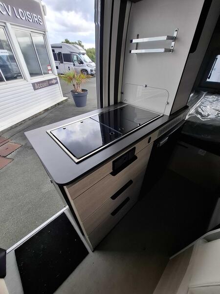 FINITION FUN+Peinture pare-chocs avant couleur carrosserie, Skid plate bouclier avant noire, commande radio au volant, Anti-brouillards avant, Découpe cabine, Station multimédia DAB PIONEER avec écran 6.8" et fonction apple carplay et android auto, Caméra de recul, Salle d'eau DUO'SPACE avec paroi pivotante, 2ème batterie cellule AGM 92aH, 2ème clé télécommande (PLIP), gouttière porte latérale avec éclairage LED intégré, Eclairage d'ambiance meubles pavillon et chambre, Décoration extérieur FUN+ : 6850 €