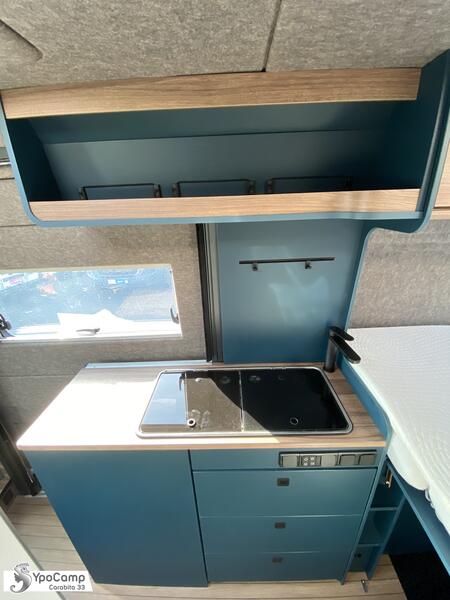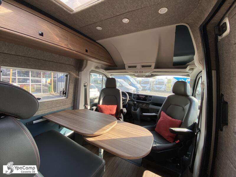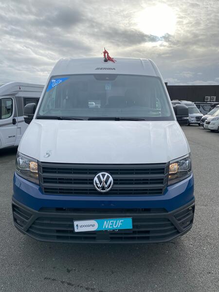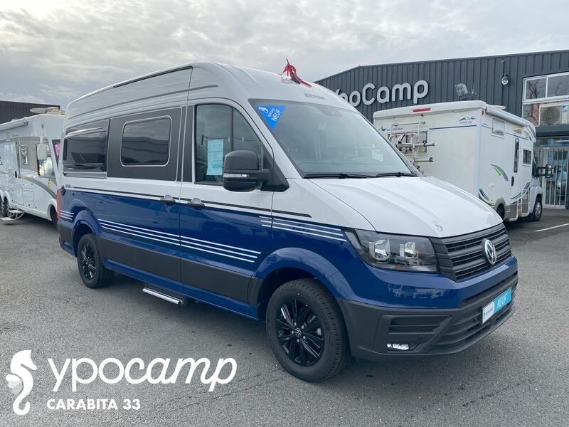 PACK FIRST EDITION Peinture extérieure bicolore unie : blanc Candy / Bleu / VW Crafter 35 3,5t - 2,0l TDI SCR - 130 KW/177 ch - Euro VI-E /Boîte de vitesses automatique à 8 rapports / Jantes alliage 17" coloris noir / Sièges conducteur et passager chauffants avec réglages séparés à 3 niveaux / Système de navigation "Discover Media" / Chauffage gazole Truma Combi D 6 E avec chauffe-eau intégré de 10 l / Surmatelas / Deux lampes nomades multifonctions sur batterie supplémentaires /Deux coussins assortis pour le séjour / Stores plissés de cabine / Transformation de la dînette en couchage avec coussin supplémentaire / Miroir grossissant magnétique : 12200 €