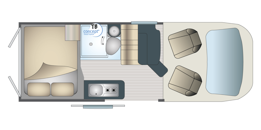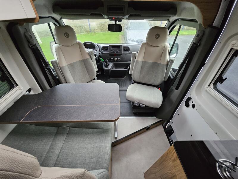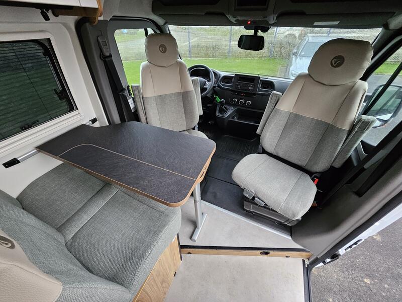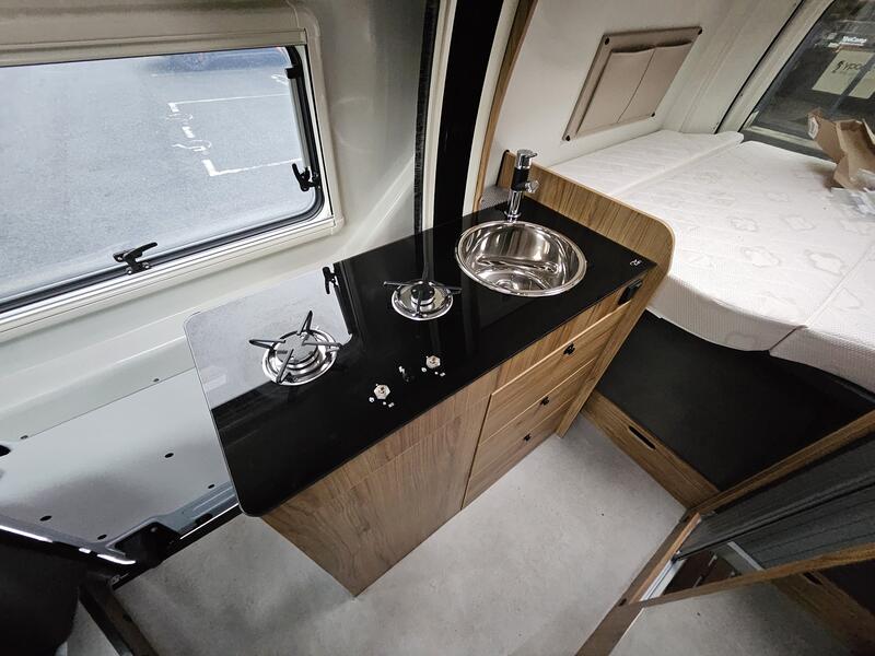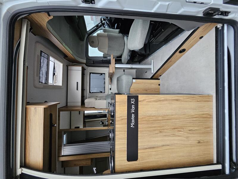 Le Master Van XS incarne l'excellence de Font Vendôme en réunissant de manière optimale une cuisine au design élégant, un salon convivial et une salle de bains polyvalente 3 en 1 TB Concept.