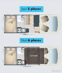 Type de couchages : Lit dinette + Lit pavillon + Lit sur soute