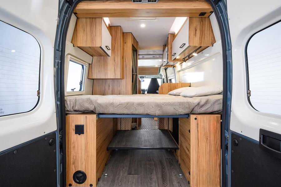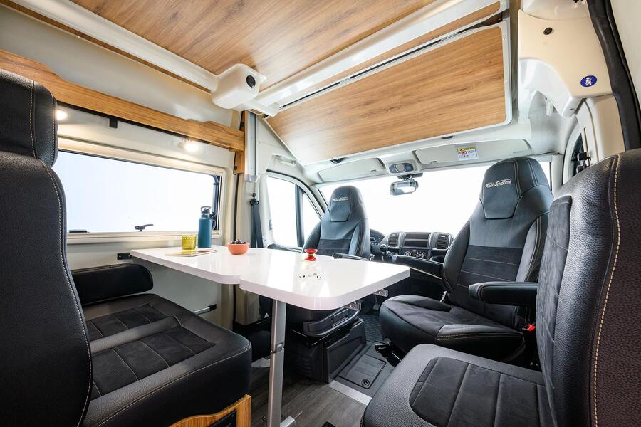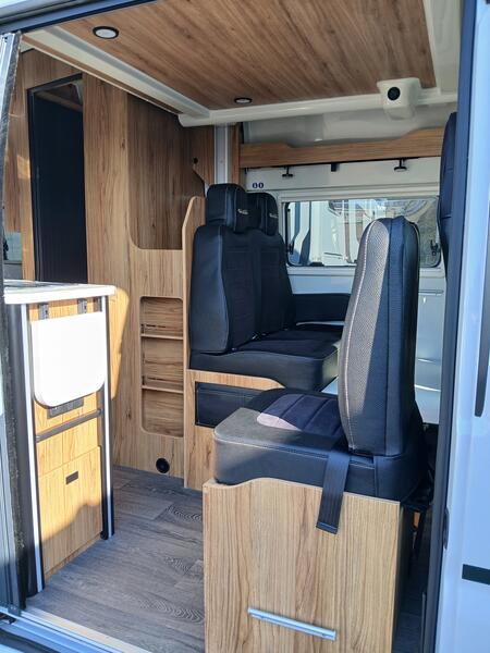 Quoi de mieux que partager ses découvertes et ses voyages en famille ou entre amis ? Doté d'une 5ème place carte grise de série, le Terravan peut accueillir 5 personnes en couchage, grâce à son intérieur parfaitement optimisé dans 6m de longueur. Son lit supérieur électrique vous permettra de moduler les lieux de vie sans effort. Les espaces cuisine et salle de bains sont pensés pour profiter au maximum de votre voyage.