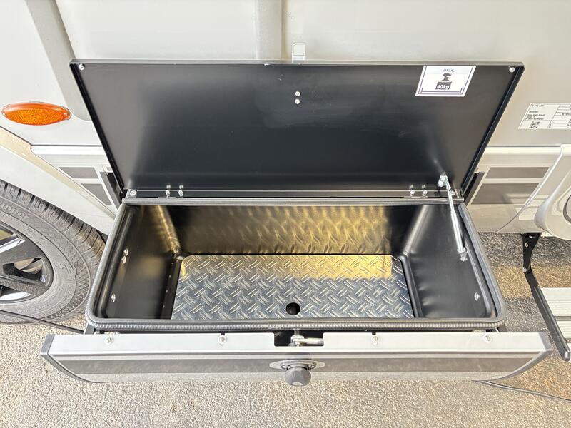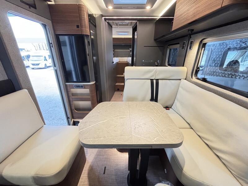 Couleur exterieure Crystal métallisée 4025€/ Porte cellule confort avec baie et store occultant centralisée 400€/ Lanterneau Turbovent cuisine 455€/ Toit polyester 695€/ Serrure porte cellule 595€/ SOG 295€/Marchepied électrique pour porte conducteur 455€ + Compartiment de rangement sous le plancher avec tiroir côté passager 595€/Compartiment verrouillable côté passager 195€/ Sommier assiette arrière 495€/ Tiroir et bac comme espaces de rangement dans la dînette 295€/ Table salon à rallonge 600€/ Douchette soute 290€/Deuxième batterie 80Ah LFP avec chargeur (capacité totale 160Ah) 1805€ + Filtre à gaz 195€/ Combi 6E 595€/ Compartiment de rangement sous plancher avec tiroir 595€/Smart tv 32' 1805€/ support tv 375€/ Filtre à eau 250€/Routeur wifi 5G 2005€/ Store plissé avant 500€/ Matelas suppl pour lits jumeaux 455€ : 17970 €