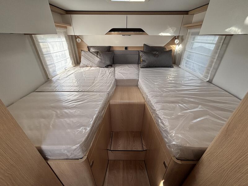 PACK CONFORT CELLULECaillebotis de douche avec surface en bois ,- Draps-housses sur mesure pour lits arrière adaptés aux contours du matelas ,- Coussins avec housses (4 pièces) - Système Ambient Light : système d'éclairage à plusieurs niveaux avec commande dynamique et individuelle (y compris l'intensité de la lumière) ainsi qu'un balisage au sol - Prises supplémentaires : 4 x 230 V (2 x garage ; 1 x dînette ; 1 x lit) / 1 x 12 V / 1 x double USB (y compris crédence cuisine) : 1400 €