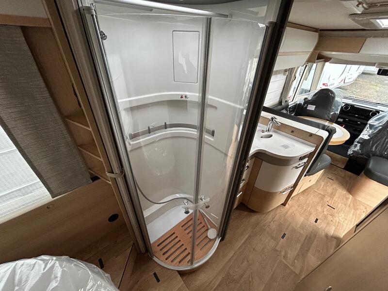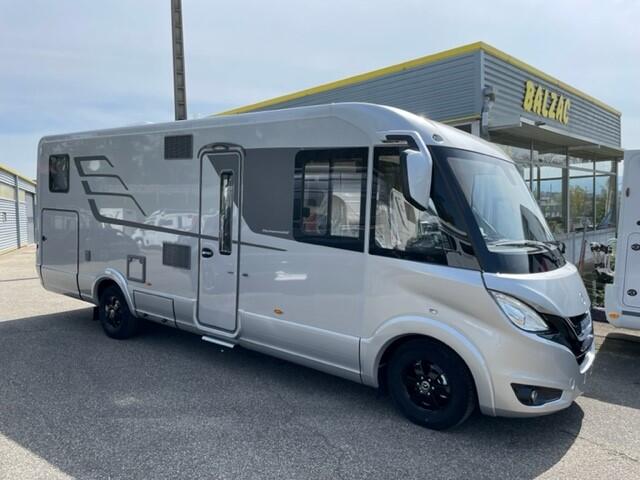 Feux antibrouillard LED y compris feux de virage statiques 795€/Prolongation de châssis - charge maximale soute garage 450 kg 500€ + Porte cellule Confort Plus avec aide à la fermeture, accès RFID (sans clé) et verrouillage centralisé + Serrure de sécurité pour porte conducteur et porte cellule 595€/Lanterneau à ventilation électrique intégrée pour la cuisine 455 + Sièges chauffants et support lombaires pour sièges Pilot 725€/Table ronde de haute qualité, extensible avec un cadre en bois véritable 600€ + Marchepied électrique pour porte conducteur (déployé automatiquement lors de l'ouverture de la porte) 455€/5ème place assise avec ceinture de sécurité sur la banquette côté droit, sens inverse de la marche 595€ + Volet roulant électrique à l'avant incluant volet de protection pour l'intimité pour pare-brise (volet de bas en haut) et fonction pare-soleil 1655€/Douche extérieure dans le garage 290 + Tiroir et bac comme espaces de rangement dans la dînette 295€/Fond du plancher en tôle, moquette et 2 rails d'arrimage supplémentaires dans le garage arrière 500€ + TEC-Tower (combiné réfrigérateur / freezer 153 l + four) 695€/Plan de travail en matériau minéral 1605€ + WC en céramique 500€/Filtre à gaz pour inverseur automatique des bouteilles 195€ + Climatiseur de toit 2.400 W 2310€/Ventilation des toilettes 295€ + Filtre pour le circuit d'eau propre 250€/ + TV écran plat LED 32" avec haut-parleurs intégrés, télécommande, lecteur DVD, "Smart-Multimedia-System" HYMER avec Bluetooth (DVB-T / C, DVB-S2) et support électrique, récepteur inclus 1905€/2ème TV LED 22" dans la chambre avec haut-parleurs intégrés, lecteur DVD, DVB-T / C, DVB-S2, câblage et support mural 1450€ + Antenne satellite numérique 80 cm double LNB 3215€/Précâblage p solaire 200€ + Cuir Grigio + PROMO HYMER DAYS - 8500€ : 24095 €