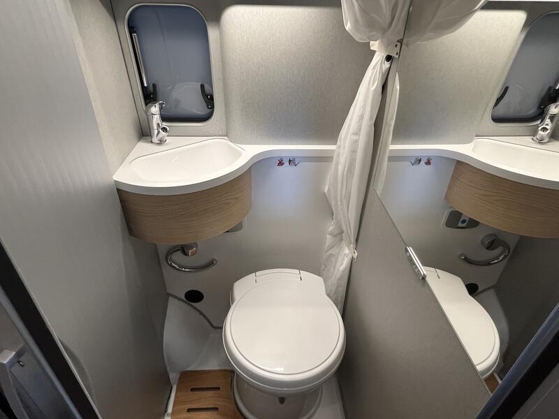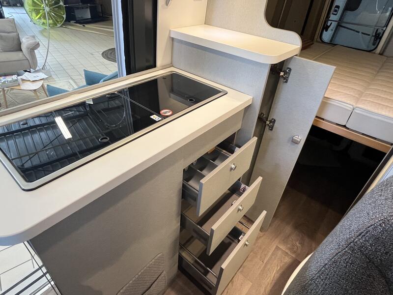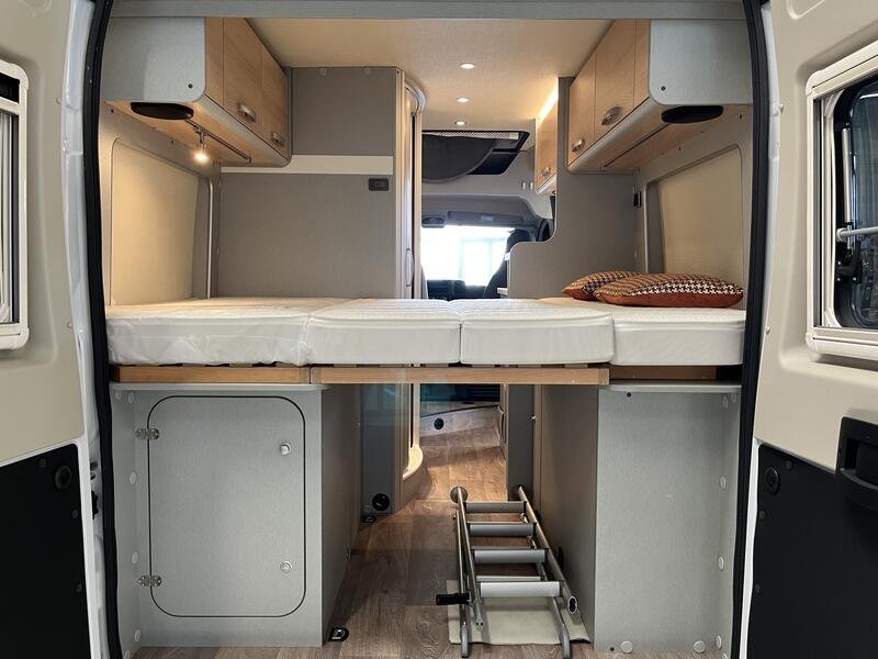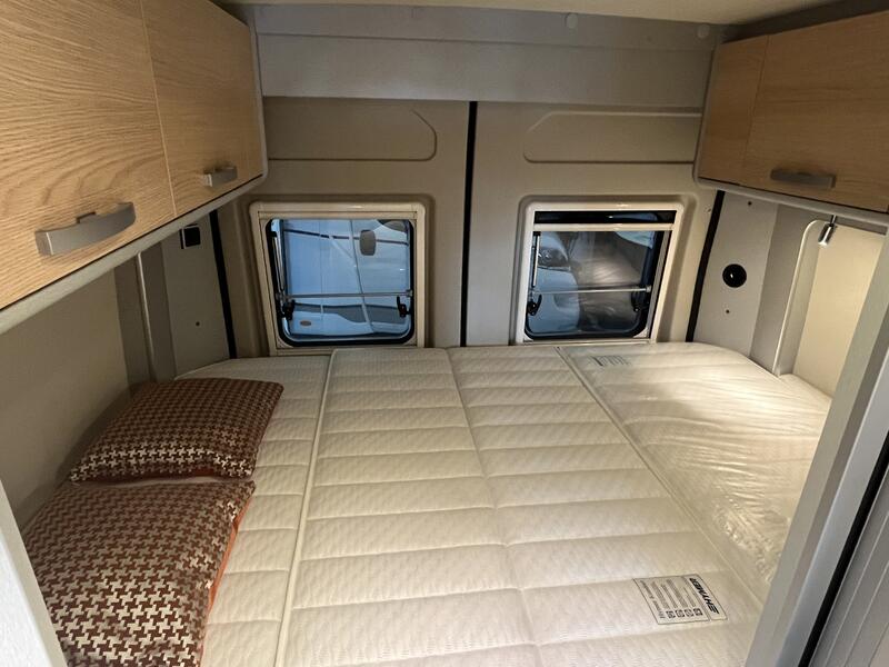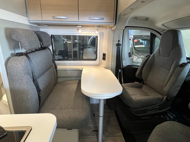 PACK READY TO CAMP LIGHTjantes alliages16",avec pneumatiques 225.75R16 (uniquement pour chassis fiat ducato light), store plissés de cabine, prises supplémentaires : 2x230V / 1x12V, ambiance style HOME (2 coussins houssés + pochette de rangement en tissu) : 1740 €