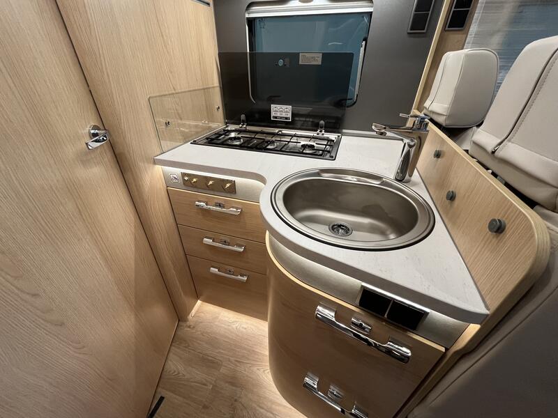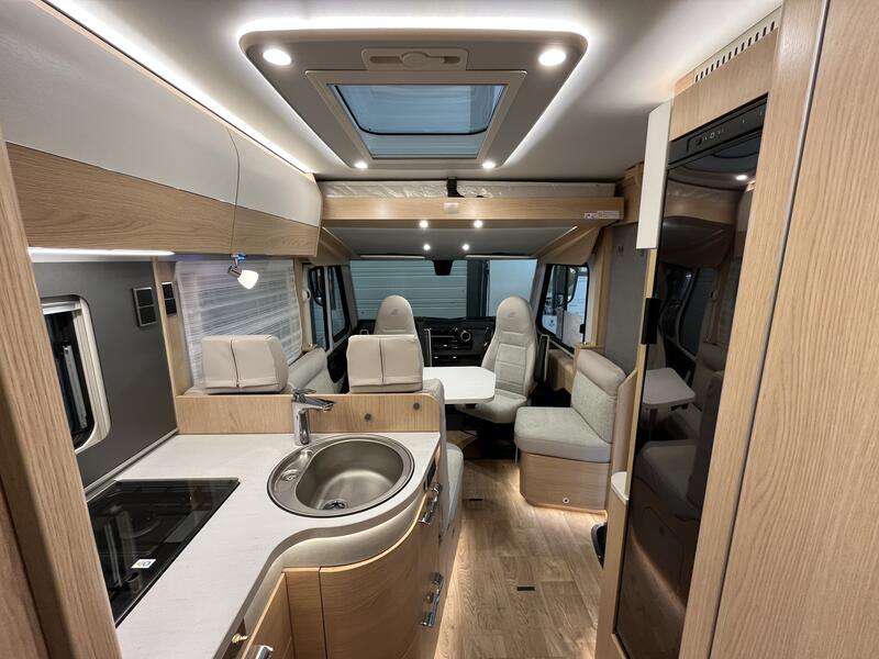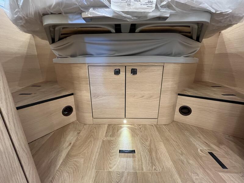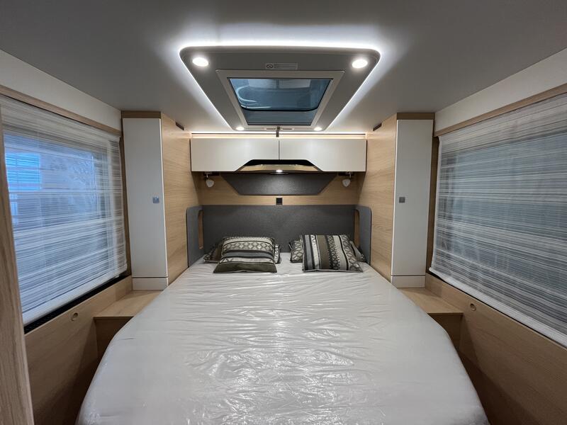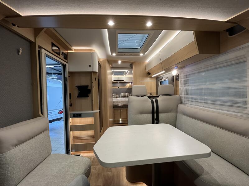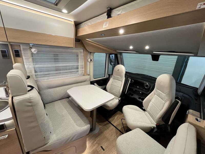 Pack Confort cellule Caillebotis de douche avec surface en bois Draps-housses sur mesure pour lits arrière adaptés aux contours du matelas Coussins avec housses (4 pièces) Système Ambient Light : système d'éclairage à plusieurs niveaux avec commande dynamique et individuelle (y compris l'intensité de la lumière) ainsi qu'un balisage au sol Prises supplémentaires : 4 x 230 V (2 x garage ; 1 x dînette ; 1 x lit) / 1 x 12 V / 1 x double USB (y compris crédence cuisine) : 1400 €