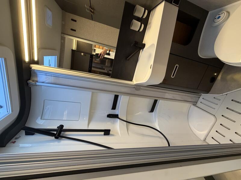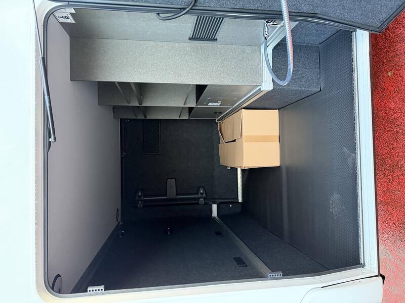 Options usine Cellule extérieurePorte cellule Confort avec fenêtre (400€) / Galerie de toit avec échelle et plateforme en alu (695€) / Verrouillage centralisé (500€) / Douchette extérieure dans la soute (290€) : 1885 €