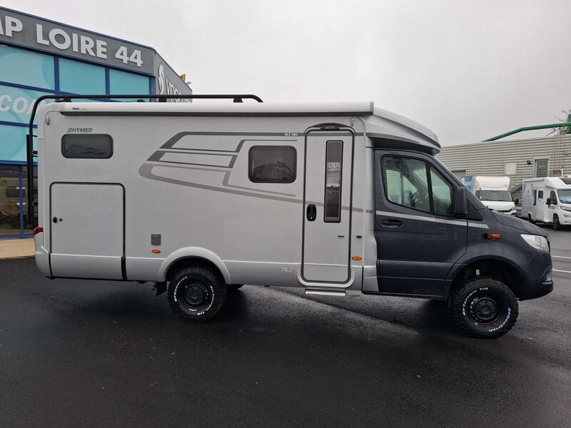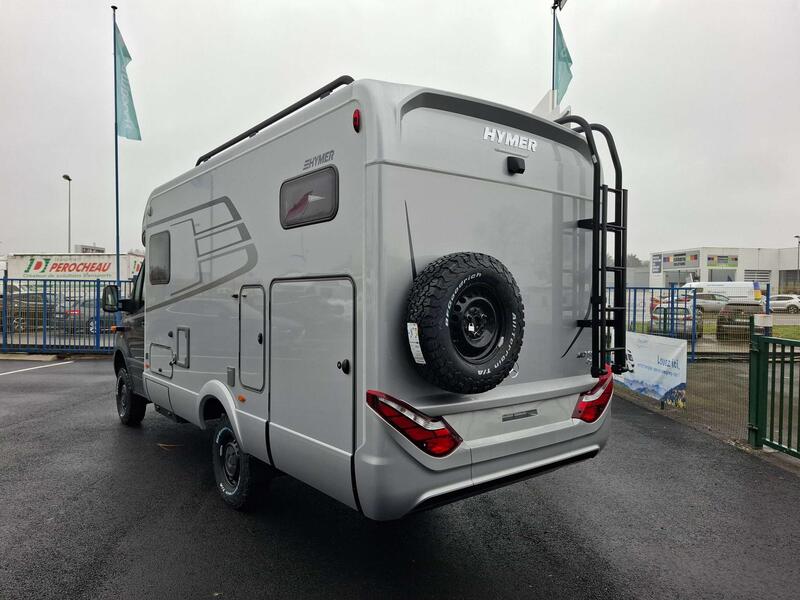 PACK STYLE : Bandes décoratives chromées sur la calandre Spoiler, éléments face avant et cadre de la calandre peints couleur carrosserie Feux antibrouillard avec feux de virage + PACK AUTARCIE LFP XL : HYMER Smart Battery System 2.0 - extension : deuxième batterie cellule 80 Ah LFP avec chargeur supplémentaire (capacité totale 160 Ah) HYMER Smart Battery System 2.0 - extension : troisième et quatrième module de batterie cellule 2 x 80 Ah LFP (capacité totale 320 Ah) Convertisseur 12 V à 230 V, 1800 W avec priorité réseau + Mercedes-Benz Sprinter 3,5 t - 419 CDI - 140 KW/190 ch - Euro VI-E + PTAC 4,100 kg (pour Mercedes-Benz Sprinter 415/417/419 CDI) + Couleur extérieure cabine : gris Ténorite (métallisé) + Couleur extérieure cellule : argent Crystal métallisé (y compris casquette) + Jantes tôle 16" (coloris noir) avec pneus tout-terrain (All-Terrain) + Transmission intégrale 4x4 permanente avec Torque-on-Demand + Protection sous châssis pour moteur et réservoir d'eau + Fermeture centralisée des portes conducteur, cellule et soute garage + Porte cellule Confort fermeture 2 points avec baie, store occultant et poubelle intégrés + Roue de secours 16'' avec pneu tout-terrain (All-Terrain) sur jante tôle et support sur paroi arrière + Store extérieur (gris) avec éclairage LED dimmable, 400 x 250 cm + Galerie de toit avec échelle arrière (coloris noir) sans plateforme en aluminium + Tôle dans le garage + Douche extérieure dans le garage + Dînette en L confort avec coussins lounge, table coulissante longitudinalement / transversalement et 2 ceintures 3 points intégrées + Transformation dînette en L en couchage (table au pied télescopique + coussin supplémentaire + utilisation du siège conducteur) + Coussin supplémentaire pour lits jumeaux avec accès confort + Résistance électrique de 1 800 W (pour chauffage à air chaud diesel de 6 kW) : 33185 €