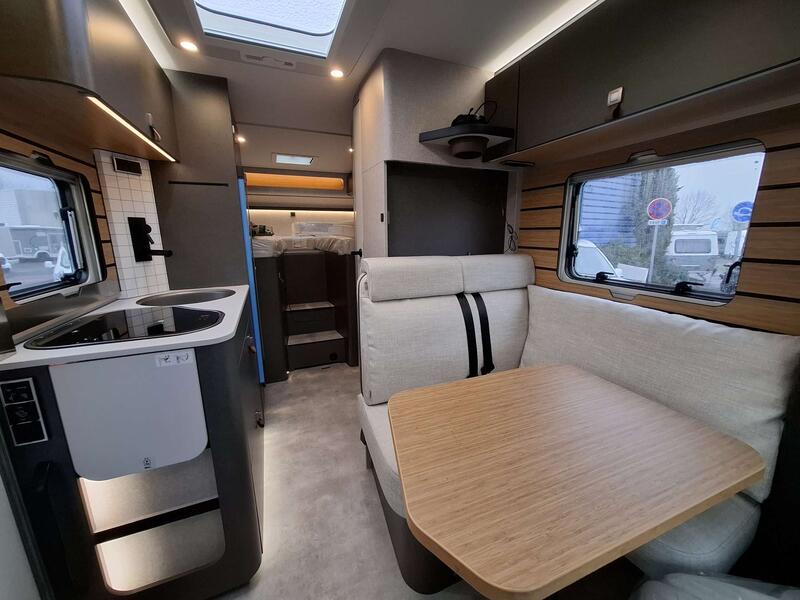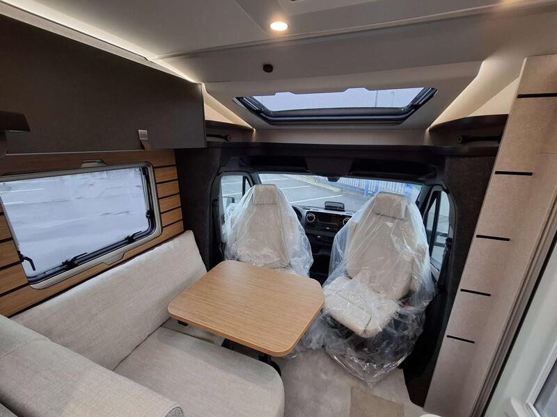 OPTIONS CONSTRUCTEURFINITION PLUS : Boîte de vitesses automatique 9G-TRONIC incluant la fonction Hold Essieu avant renforcé Bande filtrante thermo-isolante sur pare-brise Pack Acoustique Mercedes-Benz Frein de stationnement électrique Climatisation semi-automatique TEMPMATIC Instrumentation combinée avec écran Pixel-Matrix Mercedes-Benz Volant cuir (uniquement avec la boîte de vitesses automatique) Volant multifonction Régulateur de vitesse avec commandes au volant Régulateur de vitesse actif DISTRONIC PLUS avec commandes au volant Détecteur de franchissement de ligne Assistant vigilance du conducteur Détecteur de pluie Assistant reconnaissance des panneaux de signalisation Radio DAB Système multimédia MBUX avec navigation, intégration pour smartphone, commande vocale et caméra de recul Système multimédia MBUX 10,25" avec caméra de recul, commande vocale et écran tactile + PACK CONFORT CELLULE : Système de couchage avec sommier à assiettes (lit(s) arrière) Draps-housses sur mesure pour lits arrière adaptés aux contours du matelas Moquette dans le garage Revêtement supplémentaire pour mise à niveau du cabinet de toilette Coussins avec housses (4 pièces) Système Ambient Light : système d'éclairage à plusieurs niveaux avec commande dynamique et individuelle (y compris l'intensité de la lumière) ainsi qu'un balisage au sol Pack Éclairage (suspension multifonction et liseuse d'ambiance pour parois multifonctions) Prises supplémentaires : 3 x 230 V / 1 x 12 V : 8420 €