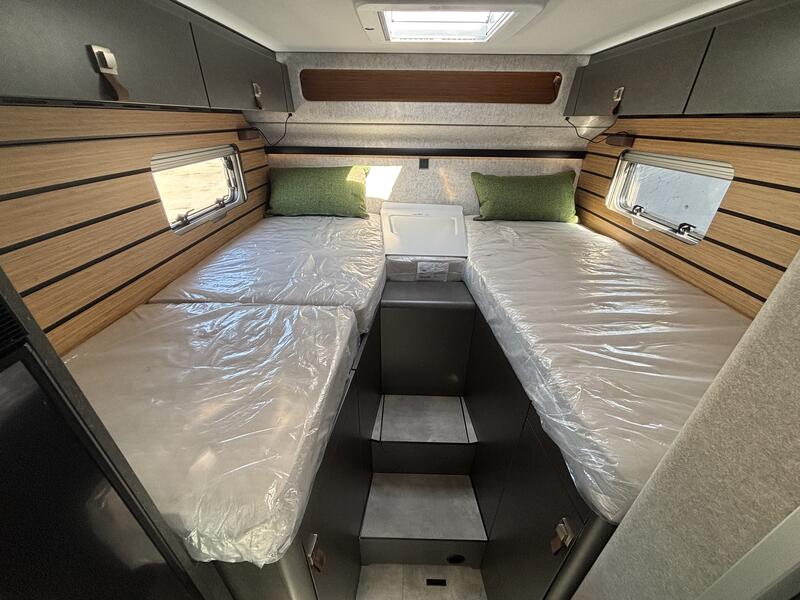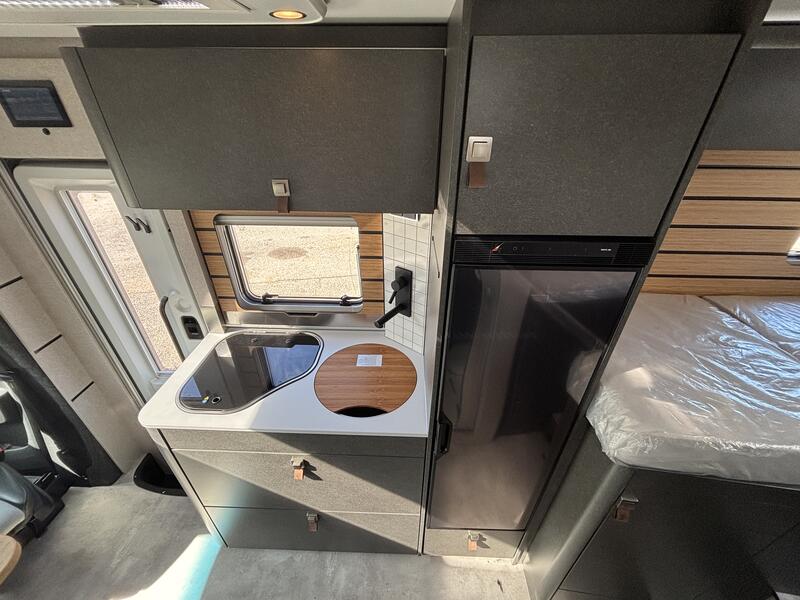 PACK CROSSOVER Mercedes-Benz Sprinter 4,1 t - 419 CDI - 140 KW/190 ch - Euro VI-E Couleur extérieure cabine : gris Ténorite (métallisé) Couleur extérieure cellule : argent Crystal métallisé (y compris casquette) Transmission intégrale 4x4 permanente avec Torque-on-Demand Boîte de vitesses automatique 9G-TRONIC incluant la fonction Hold (x19 CDI) Bandes décoratives chromées sur la calandre Feux LED haute performance Feux antibrouillard avec feux de virage Spoiler, éléments face avant et cadre de la calandre peints couleur carrosserie Pare-brise chauffant Rangement pour smartphones avec fonction de recharge sans fil et indicateur du niveau de charge Pack chargement pour le tableau de bord avec 2 x prises USB-C 5 V / 1 x prise 12 V Volant cuir (uniquement avec la boîte de vitesses automatique) Système multimédia MBUX avec navigation, intégration pour smartphone, commande vocale et caméra de recul Climatisation automatique THERMOTRONIC Régulateur de vitesse actif DISTRONIC PLUS avec commandes au volant Système de gestion automatique des phares Assistant reconnaissance des panneaux de signalisation Galerie de toit avec échelle arrière sans plateforme en aluminium Barre LED 44" au-dessus de la cabine Store extérieur (boîtier coloris anthracite) avec éclairage LED dimmable, 400 x 250 cm Protection sous moteur Sérigraphie CrossOver Porte cellule confort avec baie, store occultant, poubelle intégrée et double verrouillage Tôle et moquette dans le garage Élargisseur d'ailes avant Douche extérieure dans le garage Set d’outils (bêche pliante, hache, etc.) dans le compartiment de rangement arrière Dînette en L confort avec coussins lounge, table coulissante longitudinalement / transversalement et 2 ceintures 3 points intégrées Transformation dînette en L en couchage (table au pied télescopique + coussin supplémentaire + utilisation du siège conducteur) Système de couchage confort avec sommier à assiettes et matelas multizones pour lits arrière Draps-housses sur mesure pour lits arrière adaptés aux contours du matelas Coussin supplémentaire pour lits jumeaux avec accès confort Coussins avec housses (4 pièces) Éclairage d'ambiance Pack Éclairage (suspension multifonction et liseuse d'ambiance pour parois multifonctions) Deuxième cassette de toilettes avec support dans l'espace de rangement extérieur Chauffage à air pulsé au diesel 6 kW avec chauffe-eau 10 l, kit altitude et résistance électrique 1800 W HYMER Smart Battery System 2.0 : extension de 3 modules batterie 80 Ah LFP (capacité totale 320 Ah) Panneaux solaires 2 x 95 W avec régulateur MPPT et écran d'affichage Convertisseur 12 V à 230 V, 1800 W avec priorité réseau Prises supplémentaires : 3 x 230 V / 1 x 12 V Filtre pour le circuit d'eau propre : 0 €